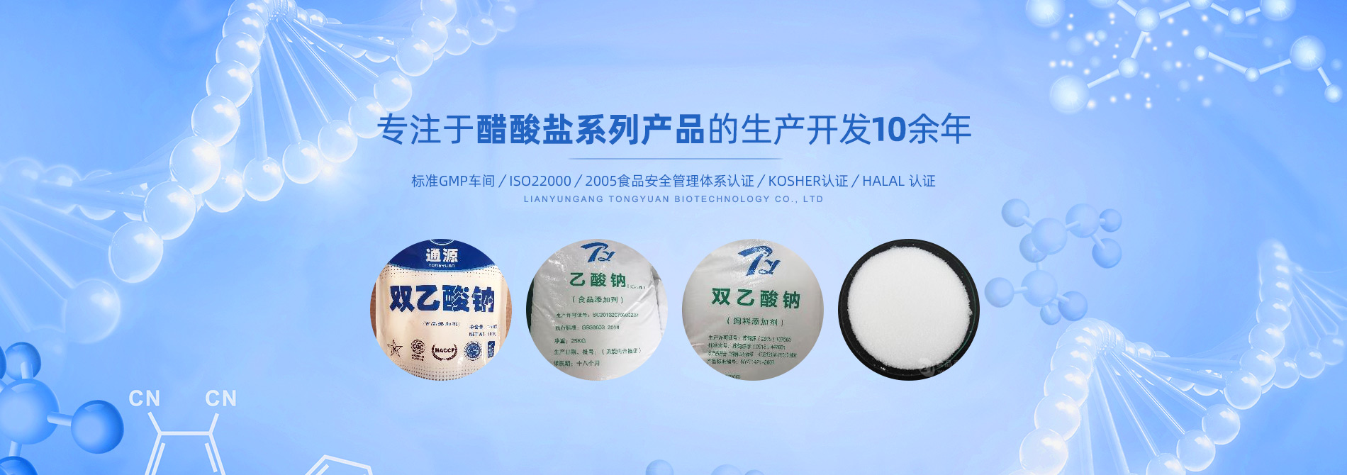 連云港市通源生物科技有限公司 是生產(chǎn)雙乙酸鈉、無水醋酸鈉、三水醋酸鈉、醋酸鉀、乙酸鈉、丙酸鈉、丙酸鈣和氯化鉀等系類醋酸鹽產(chǎn)品的專業(yè)制造商。公司專注于醋酸鹽系列產(chǎn)品的生產(chǎn)開發(fā)10余年,是國(guó)內(nèi)專業(yè)醋酸酸鹽產(chǎn)品生產(chǎn)基地?! ∧壳?,我們已和全球30多個(gè)國(guó)家和地區(qū)建立長(zhǎng)期的業(yè)務(wù)合作關(guān)系,是中國(guó)較大的雙乙酸鈉生產(chǎn)商和出口商之一。作為中國(guó)食品添加劑和配料協(xié)會(huì)理事單位,通源公司已建成標(biāo)準(zhǔn)GMP車間5000余平方米,通過了ISO22000:2005食品安全管理體系認(rèn)證、KOSHER認(rèn)證、HALAL 認(rèn)證等,這些都是我們提供高質(zhì)量產(chǎn)品和優(yōu)良服務(wù)的前提和確保?! ∩a(chǎn)出色產(chǎn)品,提供優(yōu)良服務(wù),滿足顧客需要,是我們努力的目標(biāo)。愿和我們的朋友們攜手,共...